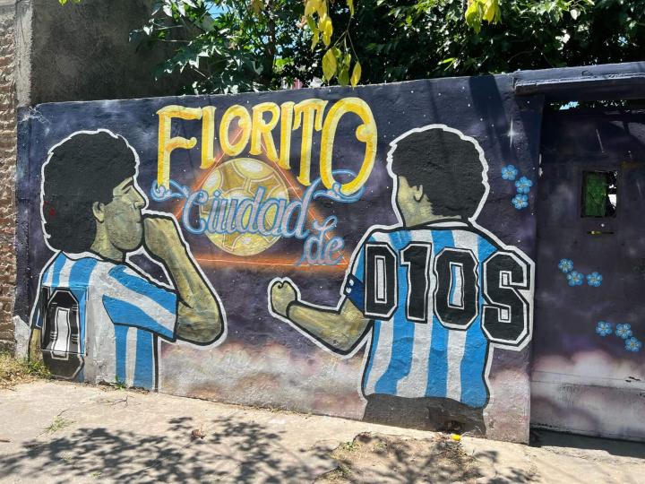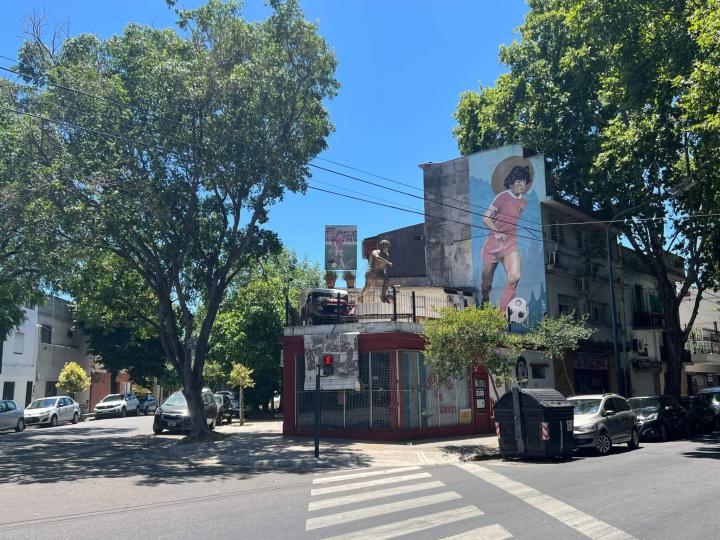 这座建筑的另一面被一幅马拉多纳的壁画覆盖,上面写着“La casa de d10s”,意思是“上帝的住所”,旁边则悬挂着一面保存较为完好的阿根廷国旗以及一幅马拉多纳身穿博卡青年队球衣的海报。
