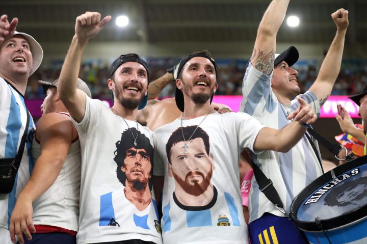 在阿根廷的比赛里,每场比赛都有数千面阿根廷国旗出现在球场,几乎所有国旗上都有马拉多纳或是梅西的肖像,或者二者兼有。