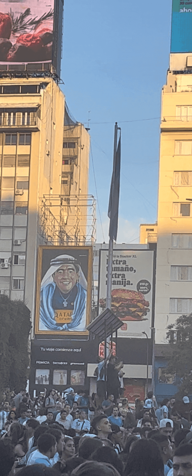 从埃塞萨机场到布宜诺斯艾利斯沿路每一处都体现着足球对这个国家的意义,尤其是在世界杯期间;每走一段路就能看见路边巨大的广告牌,广告代言人都是清一色的阿根廷球星——有梅西代言的空调,到大马丁代言的新口味芝士汉堡,不一而足。