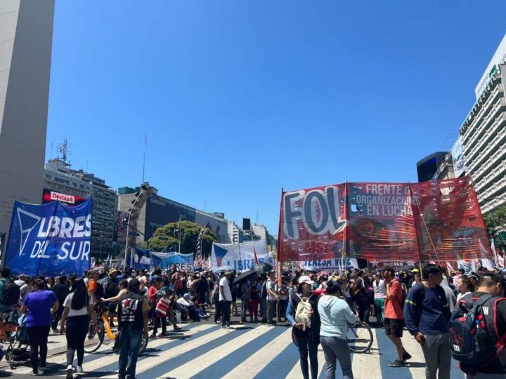 在经过那副巨大的马拉多纳壁画后不久,转进胡里奥大街9号,那里正在提醒着你阿根廷的另一面,又是一次抗议活动。
