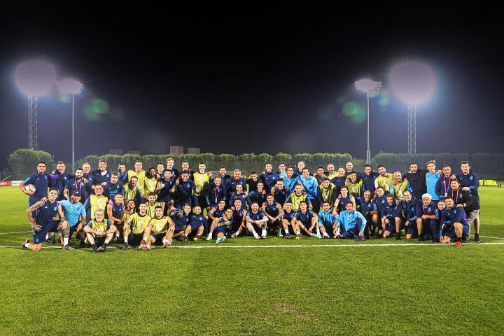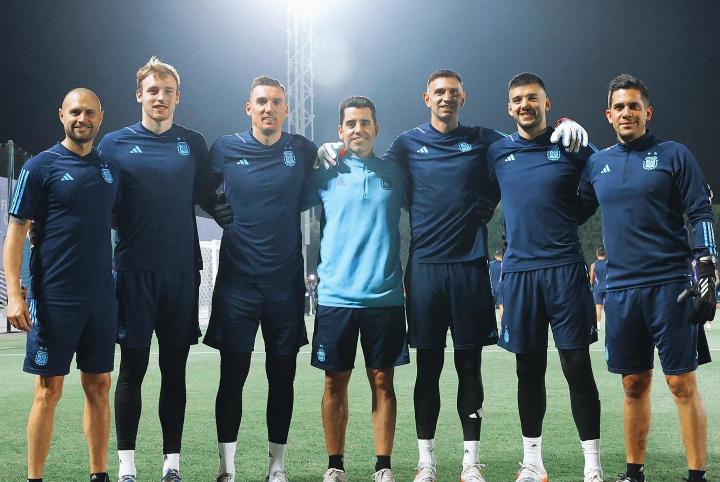 门将达米安-马丁内斯晒出全队大合影,梅西C位,阿根廷足协主席塔皮亚也参加合影,达米安-马丁内斯写道:“在卡塔尔的最后一堂训练课,我们要一起去参加决赛,因为我们梦想着去争取荣誉。”