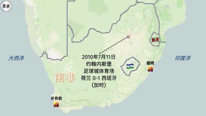 值得一提的是,三次打入决赛但都铩羽而归的荷兰曾在南非拥有小块殖民地,而西班牙并没有在南非进行过殖民活动,或许这也是他们能够捧起大力神杯的原因之一(大误)?