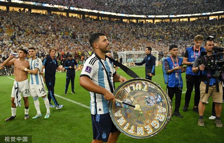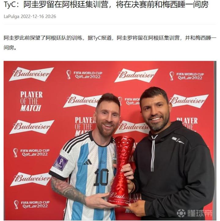 而半决赛前,阿圭罗更是直接前往了阿根廷在卡塔尔的训练基地,并在半决赛后亲自给梅西颁发了当场的最佳球员奖杯。