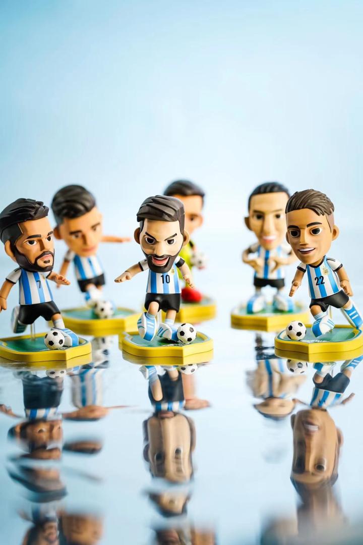 2、阿根廷国家队世界杯新品盲盒*2:阿根廷国家队官方授权,正版运动潮玩王牌化身世界杯新品,围绕阿根廷国家足球队世界杯最新核心阵容设计并打造,系列包含6个常规款产品+1个隐藏款产品。