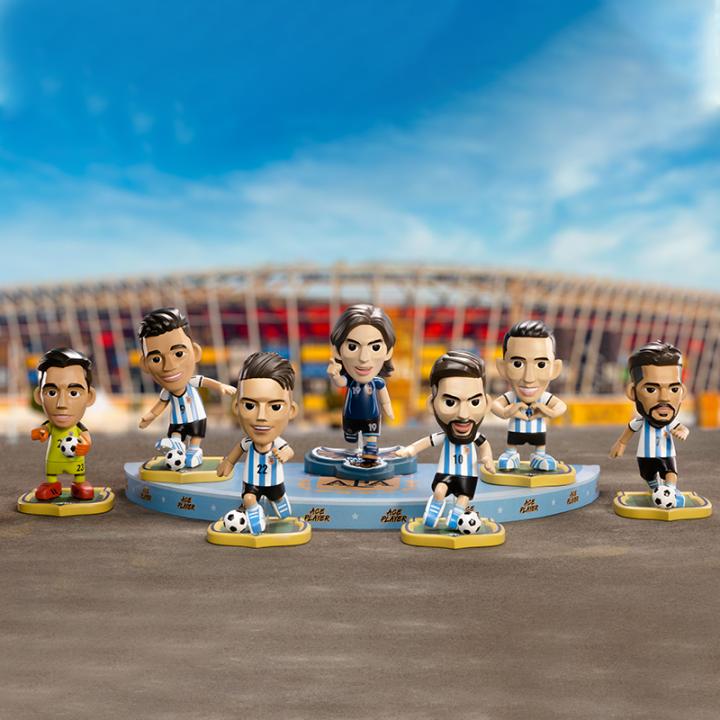 王牌化身王牌化身获得阿根廷国家队授权,打造阿根廷国家足球队盲盒系列,产品包含6个常规款+1个隐藏款。常规款为梅西、迪马利亚、劳塔罗、德保罗、阿尔瓦雷斯和门将埃米利亚诺,隐藏款为第一次参加世界杯的梅西。快来将梅西和你喜欢的球星带回家吧!