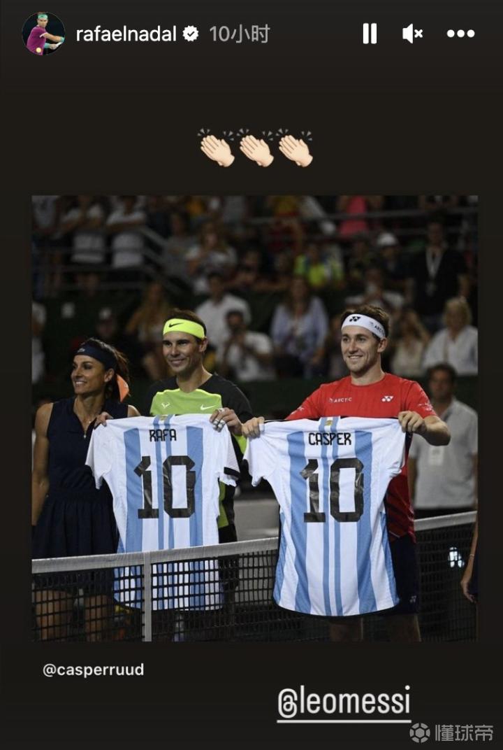 纳达尔发文祝贺阿根廷队夺冠,并晒昔日举10号球衣照片