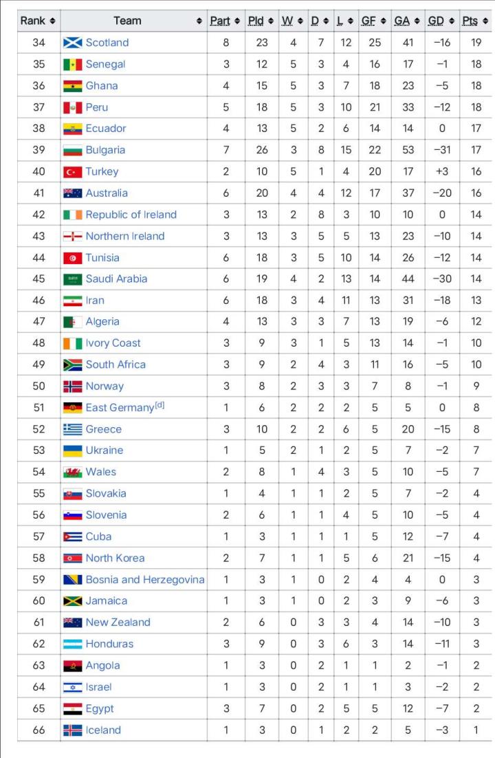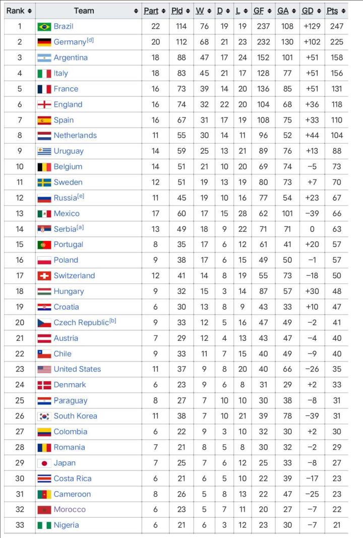 世界杯历史总积分榜
