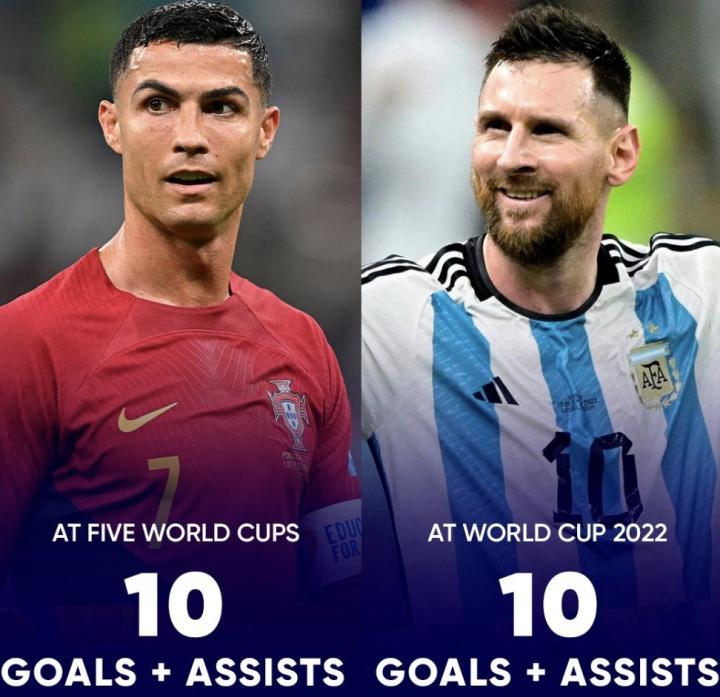 梅西本届世界杯直接参与10球,与C罗五届世界杯数据持平