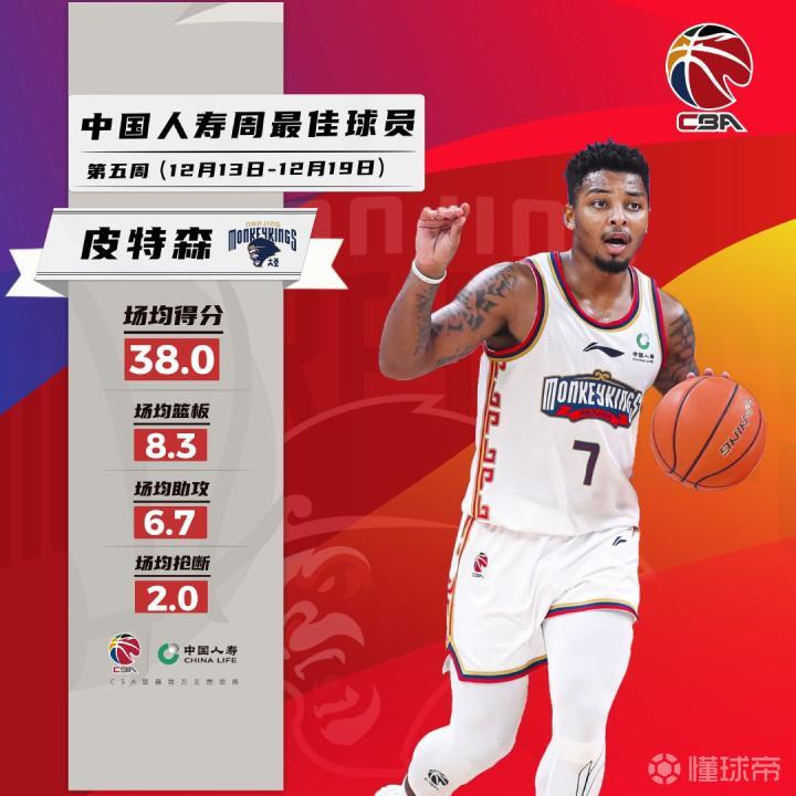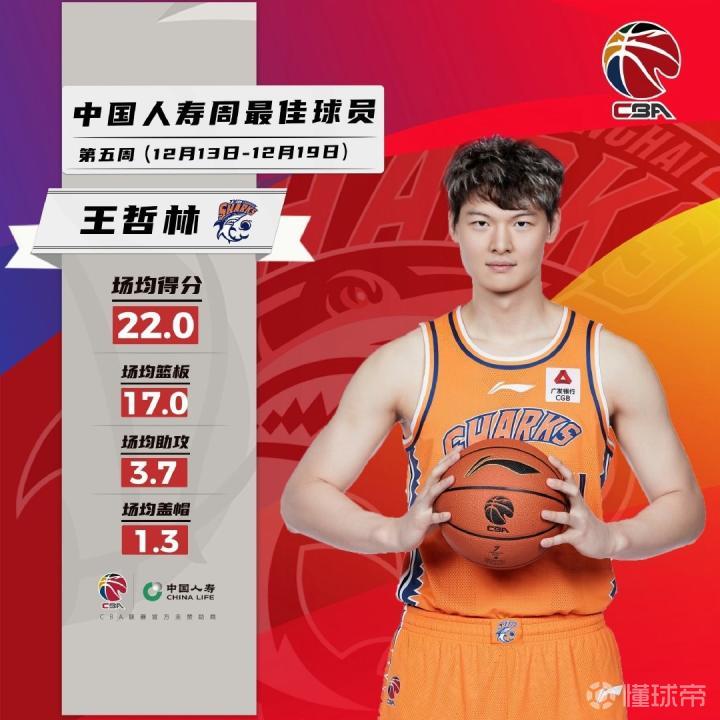 12月20日下午,CBA联赛官方公布第五周最佳球员,王哲林和同曦外援皮特森成功当选。