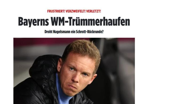 《图片报》表示,纳格尔斯曼必须带领拜仁从世界杯的阴影中走出。不然的话将很难在欧冠赛场面对巴黎。巴黎有着本届世界杯发挥最出彩的两名球星梅西和姆巴佩。