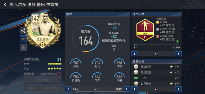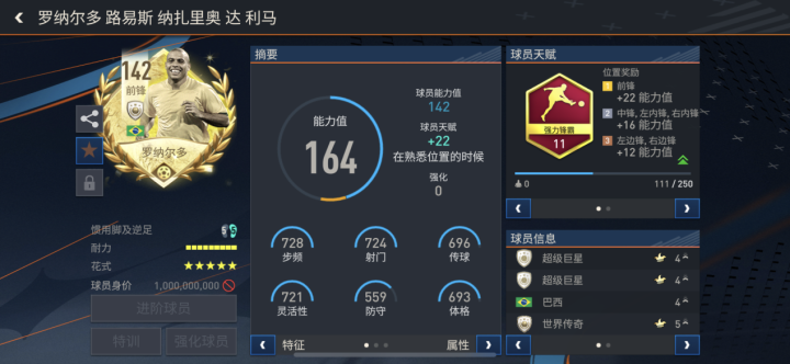 142的最高等级,各项突破极值的数据配给,强大的终结能力与AI意识,几乎都在诉说着“巴西3R”的强大之处,作为足球爱好者,同时也作为《FIFA足球世界》的忠实玩家,这套前场三人组合几乎没有不入手的理由。