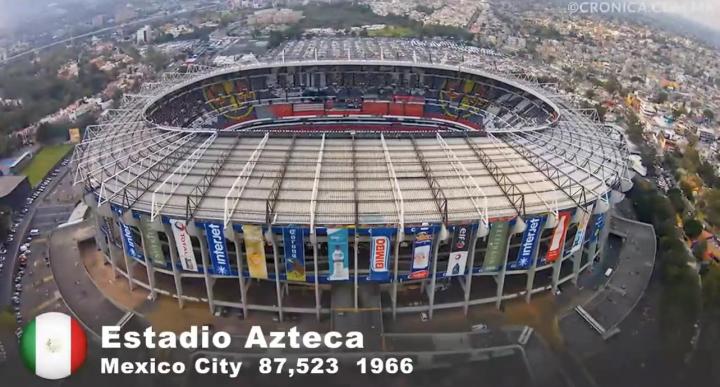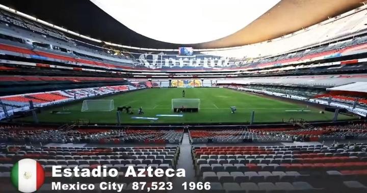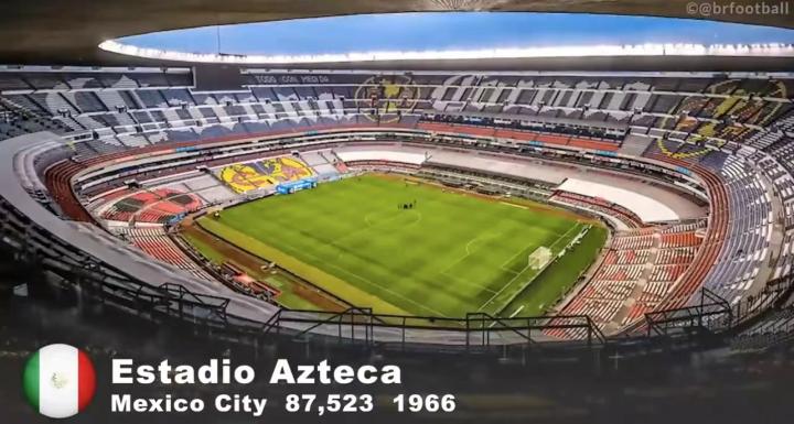 阿兹特克球场是墨西哥城的一座足球场,可容纳8.7万余人,是墨西哥最大的体育场也是美洲最大的体育场。这也是举办过两届国际足联世界杯决赛的体育场。贝利和马拉多纳都在这里捧起过世界杯的冠军奖杯。马拉多纳的上帝之手和世纪进球就发生在这座球场。除了世界杯;这座球场地举办了所有类型的国际足联男足国家队比赛,包括各自的决赛(联合会杯、奥运会足球赛、U20世界杯和U17世界杯)。