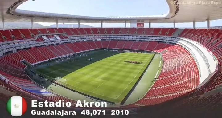 阿克伦球场,它的容量接近5万人,体育场具有独特的形式,其设计类似于一座正在喷发的火山,体育场的白色薄膜,看起来像盘旋在火山上方的云。周围环绕着的绿地一直延伸至上部,当没有比赛时,这里的斜坡变成了公园。现为墨西哥足球超级联赛球队瓜达拉哈拉的主场。