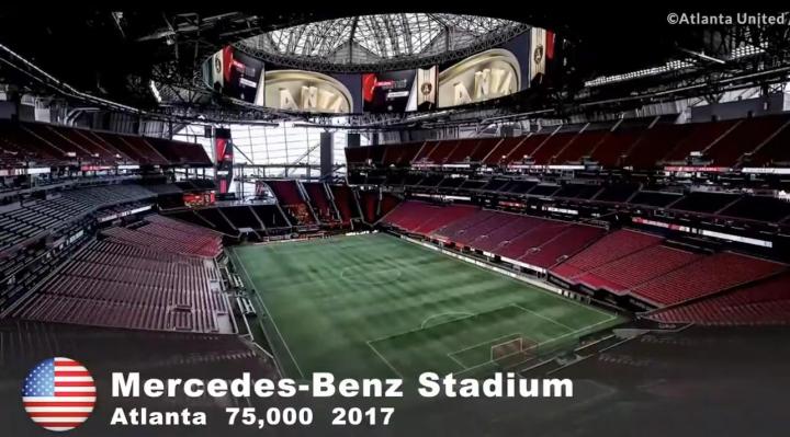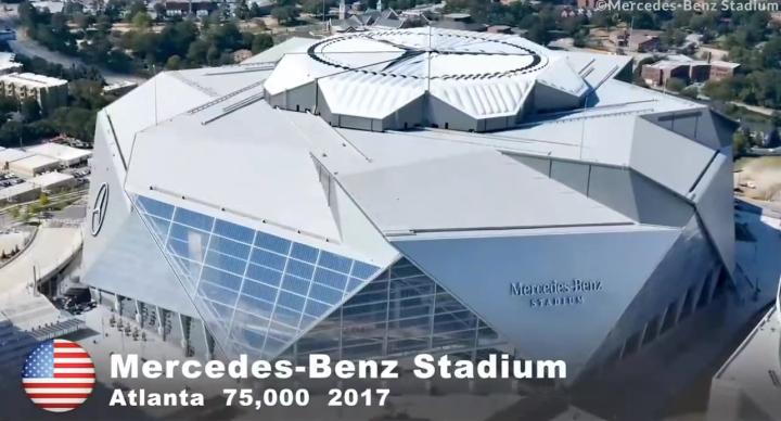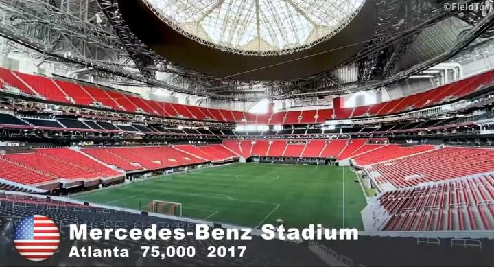 梅赛德斯奔驰球场这座2017年刚刚落成的球场位于美国佐治亚州亚特兰大市,是一座多功能体育场。可容纳75000名观众。它是美国国家足球联盟(NFL)亚特兰大猎鹰队和美国足球大联盟(MLS)亚特兰大联队的主场。场馆从一开始规划时,便强调了多用途的属性。 除了举办日常的NFL和MLS主场比赛外,设计之初球场各项规格就严格按照国际足联世界杯举办场地的要求。有趣的是,该体育场还有一个全年为游客开放的特殊旅程。在这个90分钟的幕后旅程中,游客将近距离踏足球场,球员休息室,贵宾室等,感受偶像们挥汗如雨的点点滴滴,同时聆听到一些鲜为人知的赛场幕后故事。