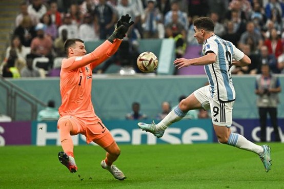 第四、VS克罗地亚,阿尔瓦雷斯单刀杀入禁区内,在即将射门前被门将阻挡摔倒,阿根廷失去一次绝佳得分机会。