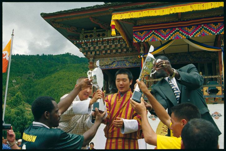 另一场“世界杯决赛” 2002年6月30日,也就是韩日世界杯决赛那天,在喜马拉雅山南麓小国不丹举行了一场叫做”THE OTHER FINAL“,也就是”另一场决赛“的比赛,对阵双方是当时FIFA排名倒数第二的不丹,以及倒数第一的加勒比海小球队蒙特塞拉特,近两万人现场观战。 这场比赛的举办,并非为了谴责国际足球发展的不平衡,恰恰相反,是为了展现足球这项运动的包容性,吸引力和在全球范围内广泛的影响力。 比赛以不丹4:0获胜结束,但两队共同举起了被一分为二的奖杯。 想出这个点子并进行牵线搭桥的,是荷兰导演约翰·克拉默和马泰斯·德容。 由于心爱的荷兰队无缘韩日,克拉默和德容开始天马行空,何不让排名最低的两支球队,来踢上一场属于他们的”世界杯决赛“? 这个想法首先得到了不丹的认可,借此机会在世界舞台上亮个相不是坏事; 蒙特塞拉特听说后也很感兴趣,因为当时蒙特塞拉特正处在火山爆发后的重建中,这场比赛可以给民众带来信心和希望。
