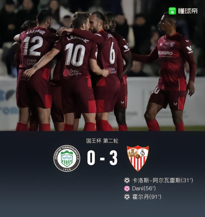 塞维利亚3-0诺斯青年CF晋级,阿尔瓦雷斯、霍尔丹破门