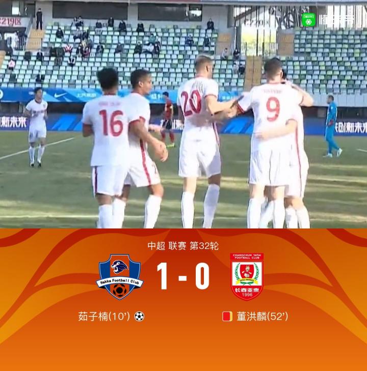 【梅州1-0亚泰结束联赛两连败,茹子楠世界波破门,董洪麟染红】