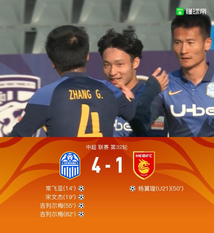 【广州城4-1河北结束联赛9轮不胜,吉列尔梅双响,宋文杰破门】