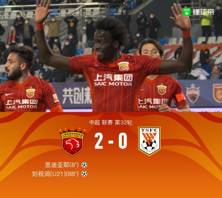 【海港2-0山东,恩迪亚耶破门,刘祝润锁定胜局,陈蒲进球被吹】