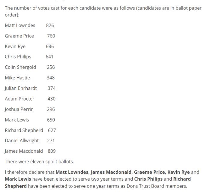 如在刚刚结束的2022年选举中,The Don Trust发出了3440张选票,收回了1218票,结果如下: