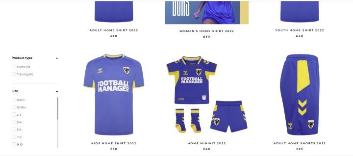 商业收入主要包括比赛日中的酒吧收入和网上商城的收入。由于疫情的关系,AFC温布尔登在20/21财年少了一块儿酒吧收入,总额在20-30万镑之间;网上商城中主要是各梯队的球衣——除了男足之外,AFC温布尔登还有女足队和U8-U19共十个青年梯队: