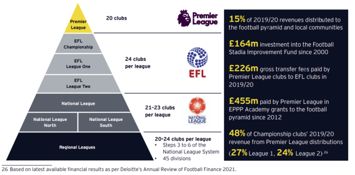 其中,比赛日和转播收入在330万镑,其中包括奖金收入、比赛转播和球员租借等等,这主要得益于英超联赛和英冠联赛对于英甲和英乙的转播补贴——英格兰俱乐部从海外购买球员时将被征收10%的税费,称为“团结税”,英超还要拿出15%的转播费来补贴英格兰的足球金字塔体系。