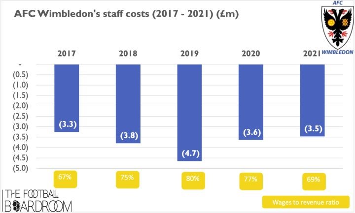 在支出上,AFC温布尔登的主要支出是工资: