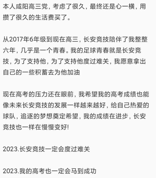 希望陕西长安竞技俱乐部永远都不要辜负。