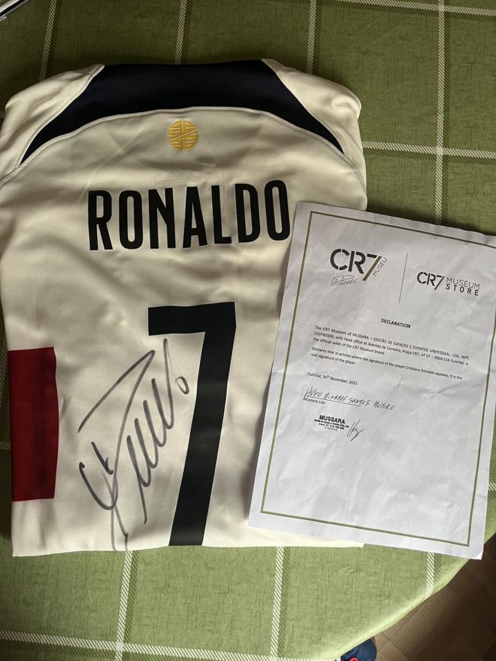 C罗 签名球衣(曼联和葡萄牙国家队)足球⚽️ 卡...Aka特 @懂球帝2022-12-25 01:34C罗 签名球衣(曼联和葡萄牙国家队)足球⚽️ 卡片 来自葡萄牙总裁自己开的博物馆 保真可拍购买过程 数量有限,马德里发货 带亲笔签名证书 总裁死忠不要错过 给对象不要错过?展开更多