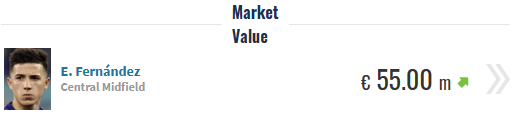 然而,从他最近的表现来看,世界杯的升值只是球员发展的一块垫脚石。与曼联、皇家马德里、切尔西和巴黎圣日尔曼队有关的传闻中,恩佐-费尔南德斯1.2亿欧元的解约条款将使今年冬天的转会变得不太可能。这位21岁的球员已经超出了一些英超俱乐部的预算。