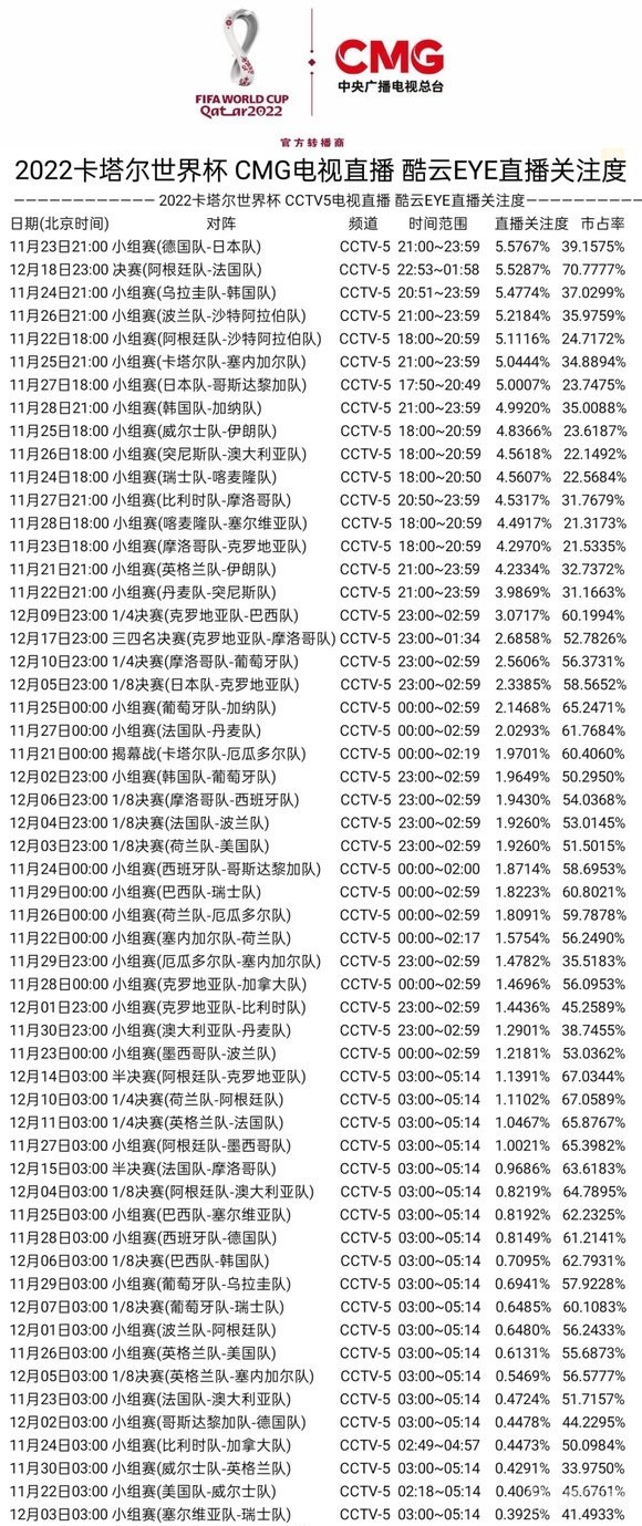 中央广播电视总台卡塔尔世界杯收视率一览