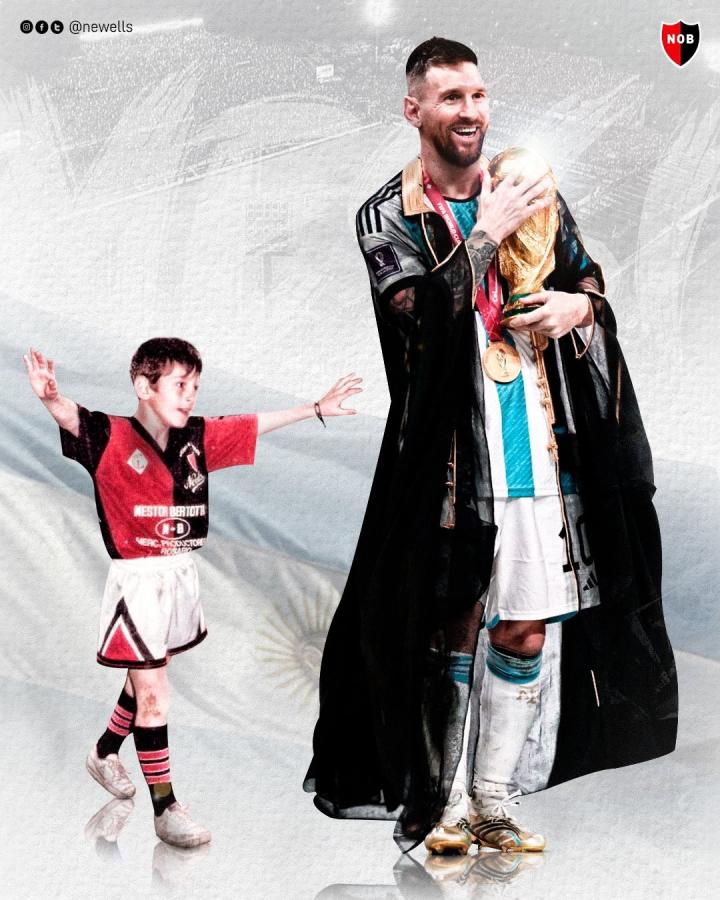 近日,梅西童年时期效力过的纽维尔老男孩俱乐部在官方社媒晒出梅西童年时期的照片和世界杯夺冠捧杯照片。
