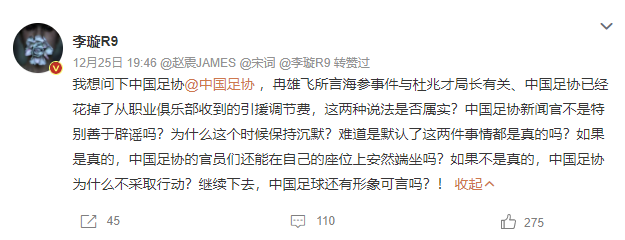 而在今年3月下旬,国家市场监督管理总局就收费合规问题派员走访了中国足协,意在推动中国足协对历史上一些不合理不合法收费进行清理时也发现:于法无据并且中国足协也开不出票据的引援调节费就趴在中国足协的账上