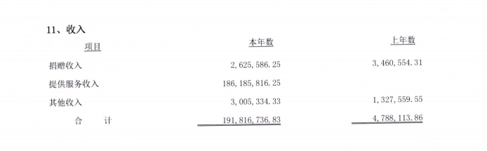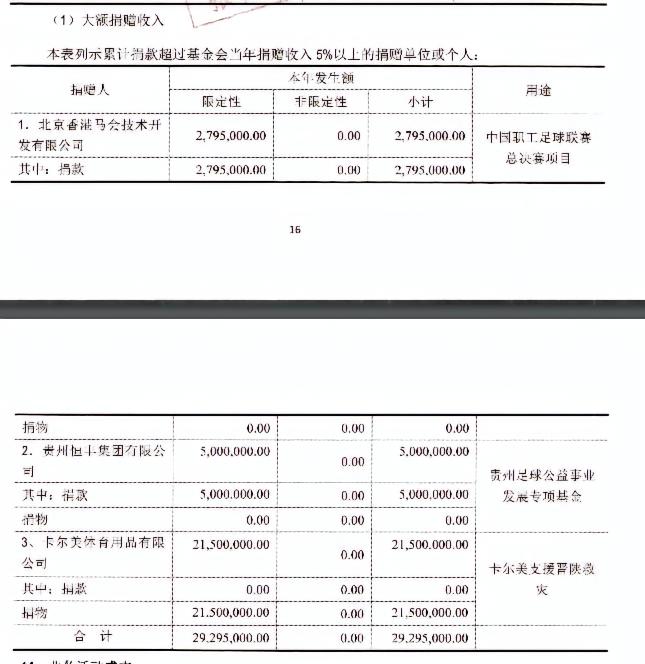 从2019年开始,中国足球发展基金会开始有了捐赠收入,并没有看到中国足协的身影: