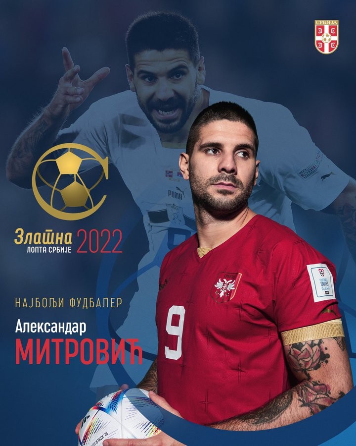 塞尔维亚足协官方宣布,亚历山大-米特罗维奇获得2022年金球奖。