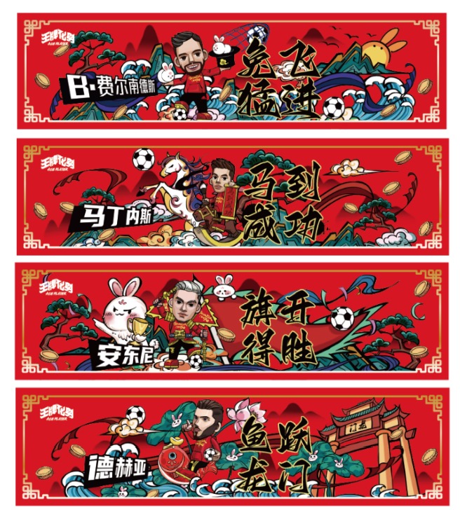 设计灵感源于马丁内斯姓名,球员执毛笔书写卷轴“马到成功”与书法融合,象征马丁内斯未来在曼联取得成功。