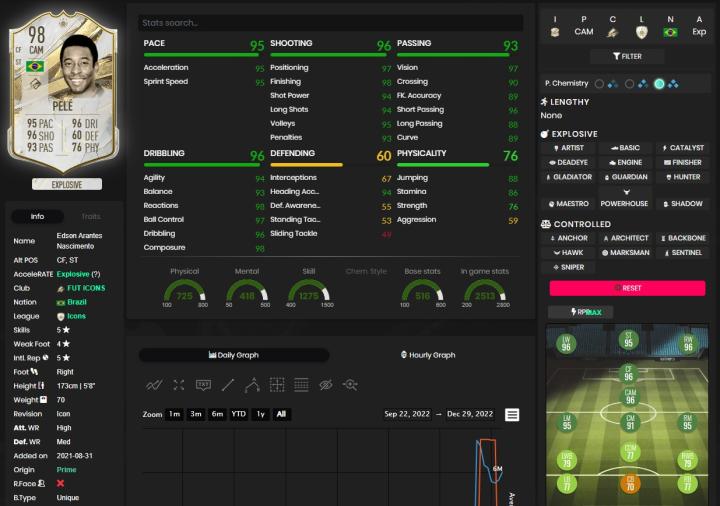 以FIFA游戏中的传奇卡作为参考,贝利也是现存能力评分最高的传奇球员