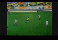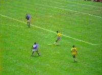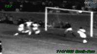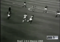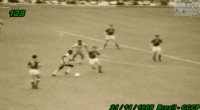 同上面的几粒进球类似,贝利职业生涯中的任意球破门都以简单直接、展现绝对力量的爆射著称,看下面这一球的助跑距离与画面感,是否会让你想起那个名叫罗伯托-卡洛斯的男人?