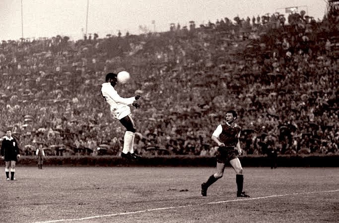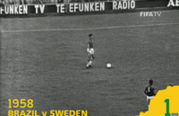 使用大腿将皮球垫起,一次完美的做球后接凌空打入死角,这是17岁的贝利所完成的事情
