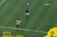 1970世界杯最经典的画面,贝利在禁区中央高高跃起,力压意大利后卫布尔尼奇头球破门为巴西队首开记录。赛后布尔尼奇在采访中说道:“比赛前我告诉自己,贝利也是皮肤里包着骨头的普通人,但我发现我错了。”