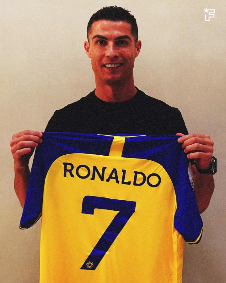 C罗将会在利雅得胜利,继续身穿自己最爱的7号球衣征战。根据此前名记罗马诺的透露,C罗与利雅得胜利签约2年半至2025年6月,年薪近2亿欧,其中包括商业交易。