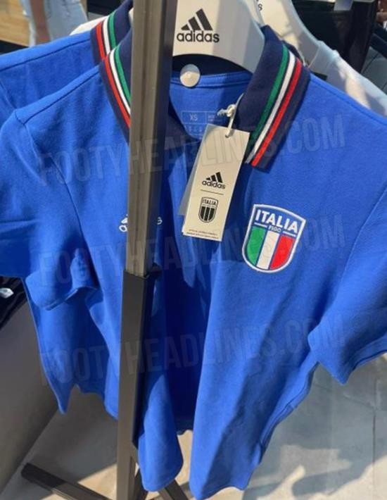 阿迪达斯设计的2023年POLO衫以蓝色为底色,意大利三色旗以三条线环绕的形式融入衣领中。