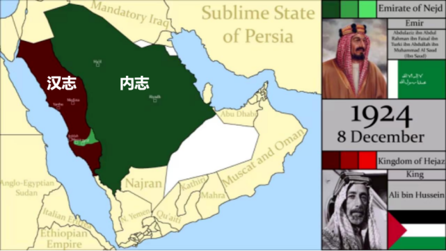 1924年,汉志王国首都麦加被内志王国攻陷。哈希姆家族逃亡至约旦。