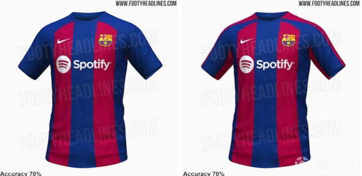 北京时间2023年1月1日,著名足球装备网站footyheadlines曝光了巴萨23-24赛季的主场球衣样式,新赛季的主场球衣将回归传统的红蓝粗条纹的设计。