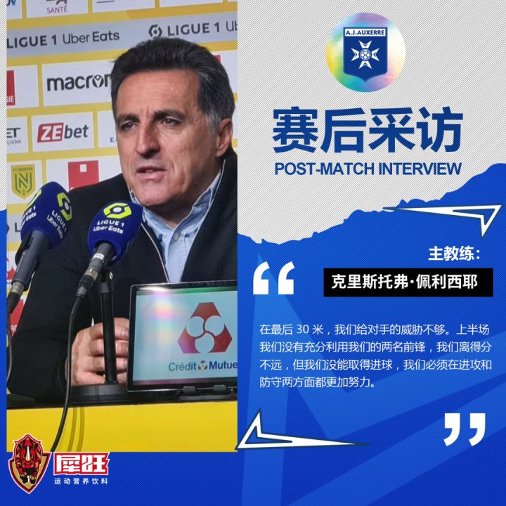 佩利西耶出席了赛后发布会,指出来球队的不足之处:“在最后 30 米,我们给对手的威胁不够。上半场我们没有充分利用我们的两名前锋,我们离得分不远,但我们没能取得进球,我们必须在进攻和防守两方面都更加努力。”