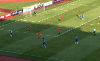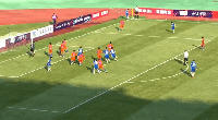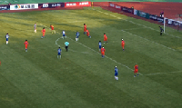 第38分钟,邓卓翔开出角球,杨阔禁区内后脚跟打门,皮球被对方门将拿到;