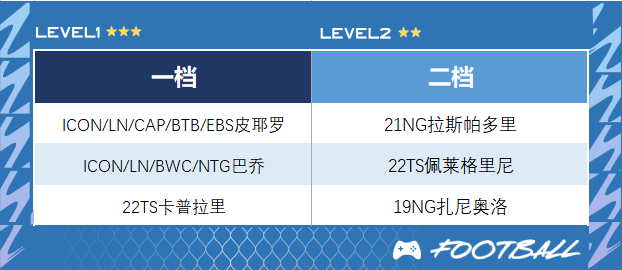 ○ 资金充足的话,可以尝试入手22TY/E21洛卡特利,他许久没出新巅峰赛季,导致强度有所下降,通过强化可以弥补。