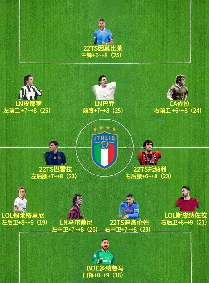 意大利套各位置的球员集中,整体的可轮换选择不多,但是首发相对均衡。以上的推荐仅供参考,大家可以根据自身打法、预算等情况,综合比较和判断,找到最适合自己的球员。