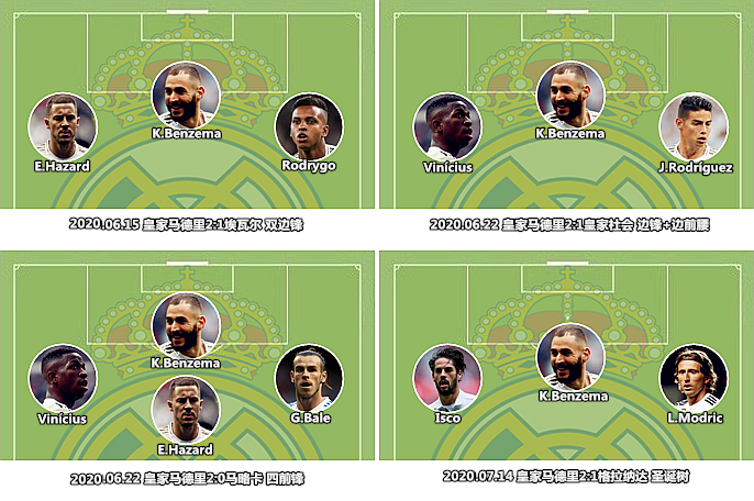 (图)2019/20赛季,皇马一路涉险夺得联赛冠军,齐达内为右翼人选绞尽脑汁。
